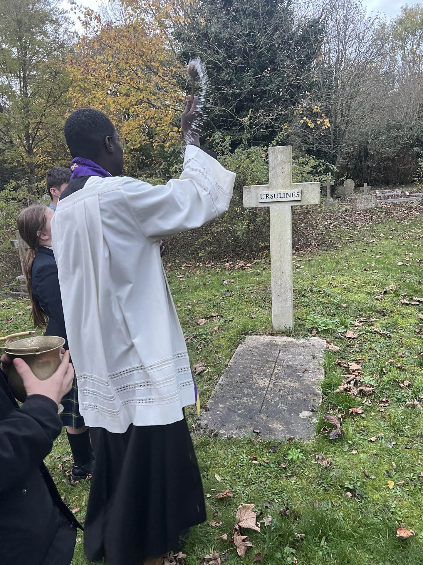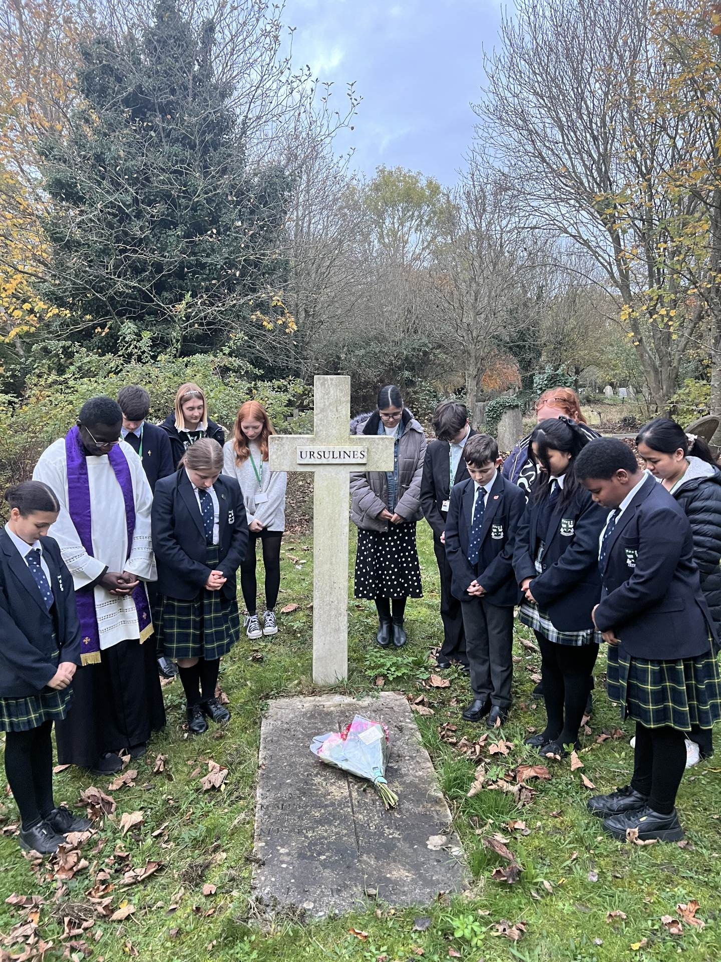 Fr Joe, our local Parish Priest, blessed the graves of other Ursuline Sisters at Margate Cemetery. The Youth SVP played flowers and read aloud their message of thanks to the Ursuline Sisters. We all recited the Ursuline Prayer.